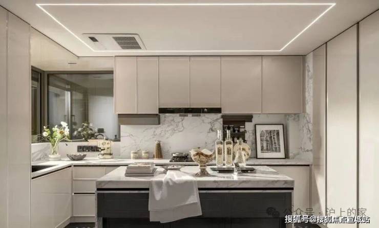 超大尺度的中西岛台,既符合中式烹饪的实用逻辑(预留足够操作台面),又能承载西式社交(朋友小聚时在岛台品酒聊天),让厨房从“单一做饭空间” 变成 “生活场景发生器”。