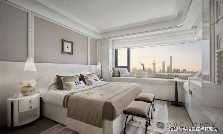 主卧、北向书房都配了270° 全景转角飘窗,不仅让阳光最大化涌入,首开 2 号楼中高区还能对望陆家嘴三件套 —— 别人要专程打卡的地标,成了业主日常抬头可见的风景。