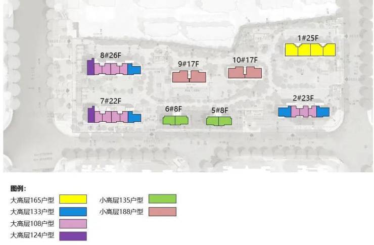 根据设计方案显示,该地块拟建2栋8F小高层住宅、6栋17-26F高层住宅以及若干社区配套用房;项目地面无车位,全人车分流,除5#、6#外,其余楼底层全架空,预计打造泛会所概念!