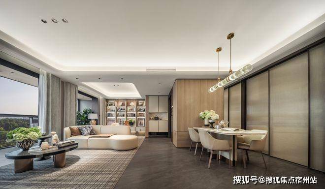 吊顶和墙面采用大量弧线造型取代冰冷的直角,✅✅江湾金茂府售楼处电话:400-8787-740✅✅不仅以柔和的轮廓减少了磕碰隐患,更给空间注入了优雅与流动的气息