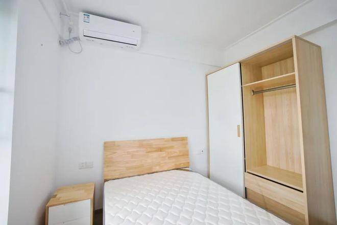 室内配有床、床头柜、衣柜、餐桌椅、沙发、茶几、空调、燃气灶、热水器。