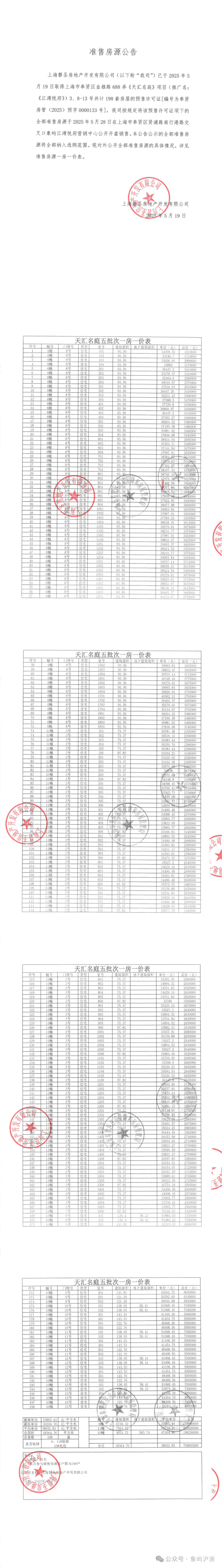 一房一价表发布: