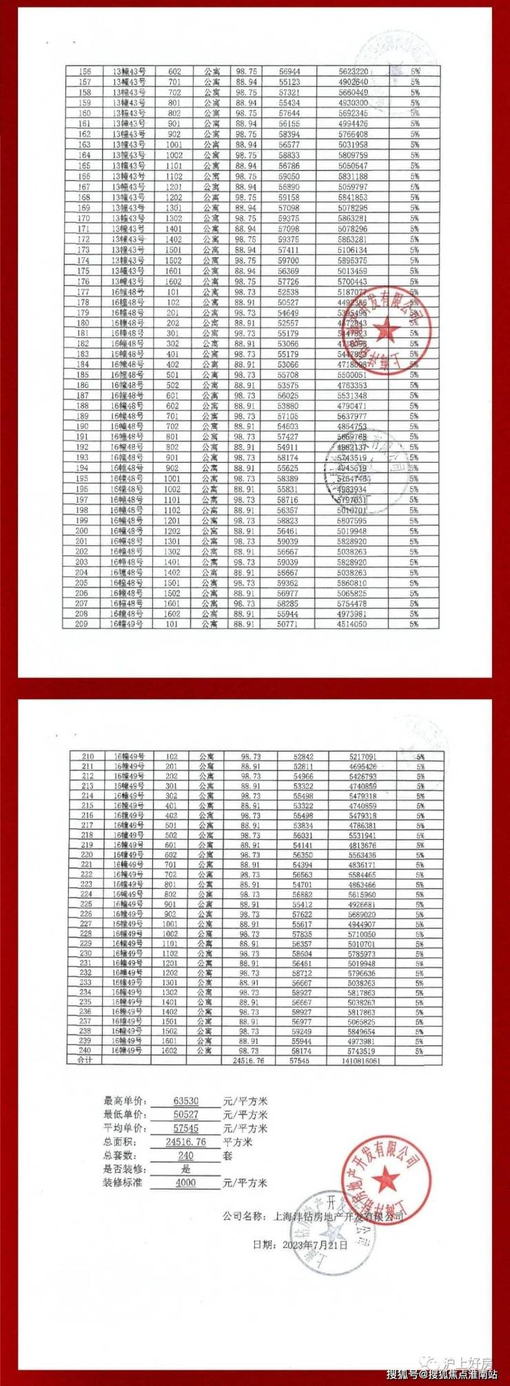 项目一房一价表