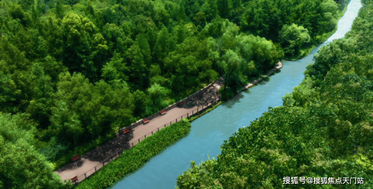 直线距离约50米,全长约1.9公里,占地面积约11.4公顷,新江湾湿地生态观鸟拍鸟基地坐落其中。