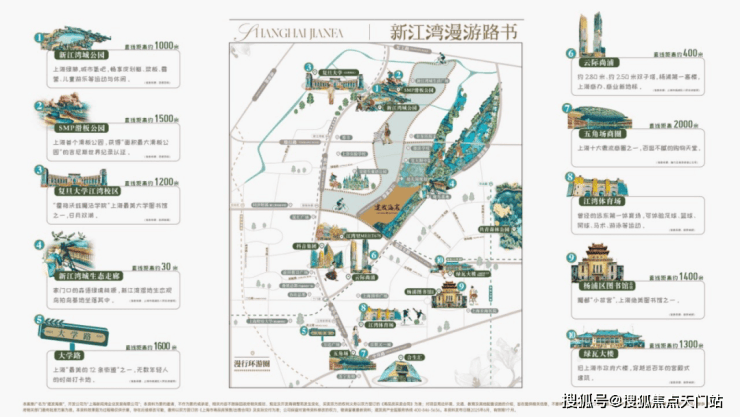 「1圈」·新江湾城骑⾏圈:通畅安全、环境舒适、全程约6.4公里的“新江湾城活力骑行圈”。