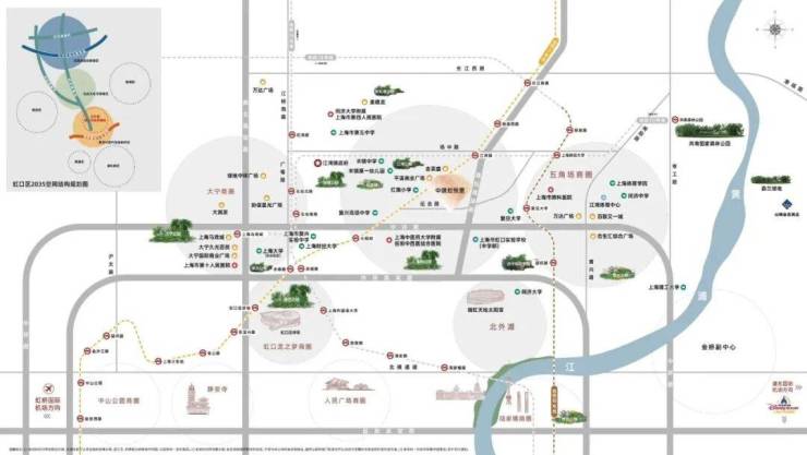 商业方面,江湾镇这个板块是宝山/静安/虹口/杨浦四区交界处,板块“左邻右舍”都是比较热闹的商圈——西面市北高新+协信、北面高境+宝山万达、东面杨浦五角场,南面虹口曲阳+四川北路商圈。