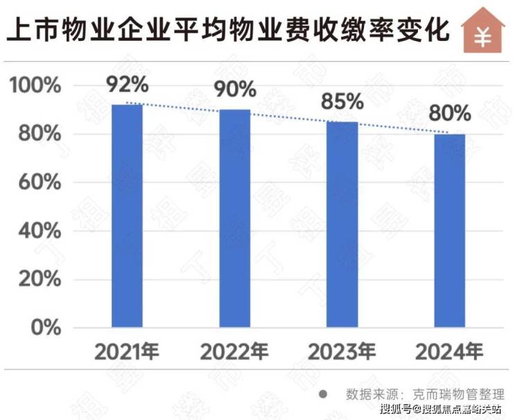 据克而瑞物管统计,2021年至今,上市物企平均物业收缴率已从92%跌至2024年的80%。