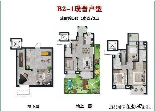 面积上与B1-1户型相同,建面约145㎡,功能区也大致相似