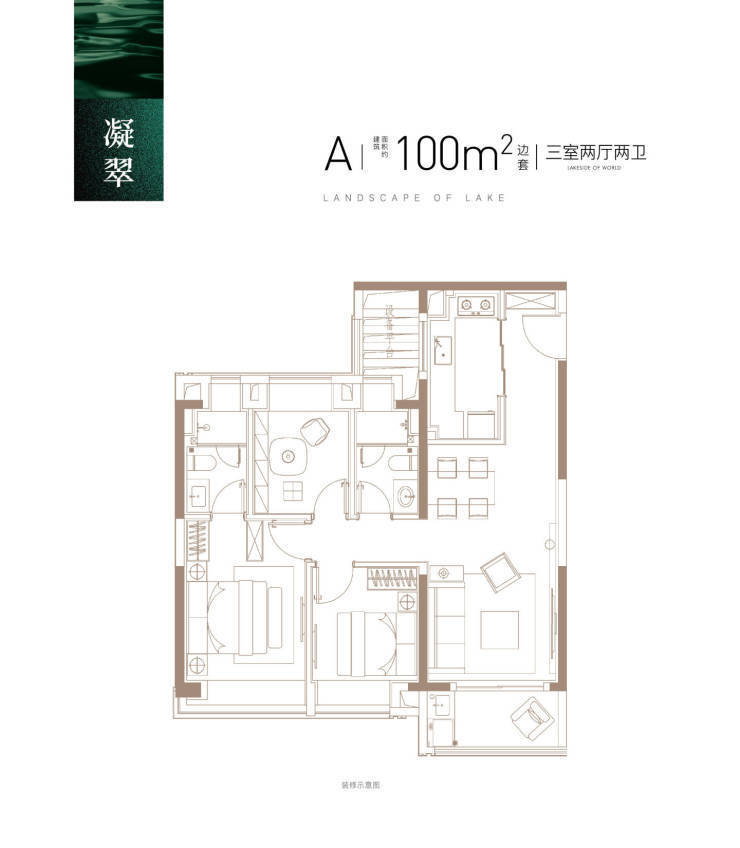 100㎡三房两厅两卫:南北通透+三开间朝南,客厅面宽5.4米,U型厨房动线优化,主卧套房设计