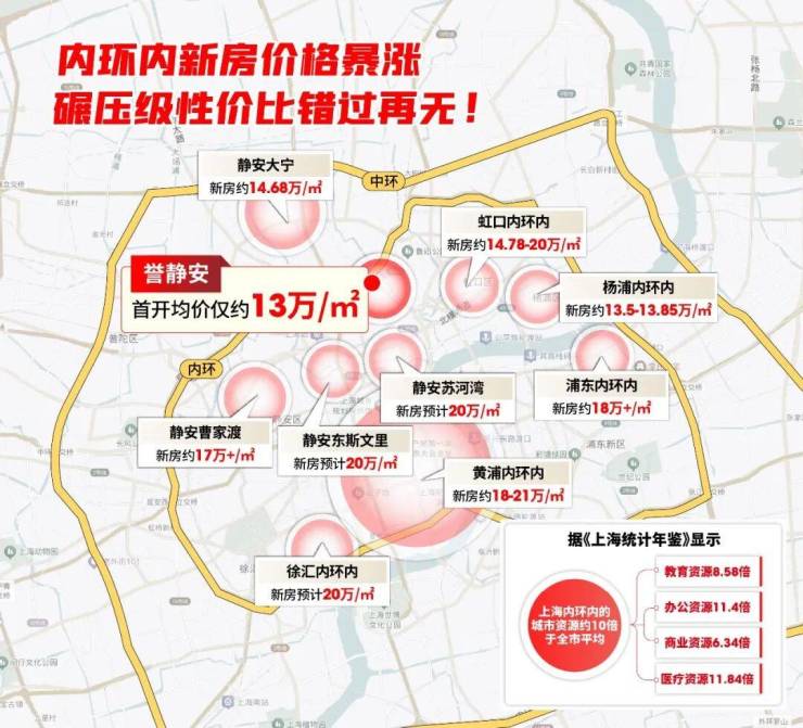 占位静安内环内核心位置的誉静安,13万/㎡的首开价劲爆,无疑是当前内环内新房的至高性价比!