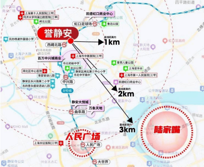 与约3.5万㎡中兴公园为邻,5 公里内还有包括鲁迅公园、爱思儿童公园、大宁灵石公园、闸北公园、静安雕塑公园等,总面积约达150万方的绿肺