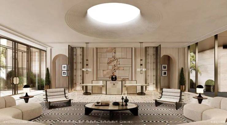 穿过墙面嵌有艺术装置的艺廊式巷道,暖光与石材肌理过滤掉外界喧嚣,再至落客大堂-迎宾大堂-归家大堂,这种 “层层递进” 的设计绝非炫技,而是在三大主题厅堂的空间转换中,完成身份与心境从 “职场精英” 到 “家庭主人” 的温柔过渡,回家路上的每一步都在卸下疲惫 。