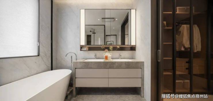 第三,3间套房的设计能满足各个家庭成员的隐私。尤其是主卧,尺度超大,并配置了双台盆+浴缸+淋浴+马桶豪华四件套,还有超大步入式衣帽间。