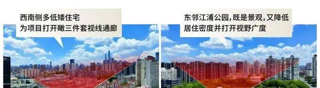 而项目容积率仅为2.16,建筑高度16-17层。更难得的是,项目周边环境进一步放大了低容积率优势:东邻江浦公园,无高层遮挡,相当于变相降低了项目实际居住密度,并扩大视野广度。