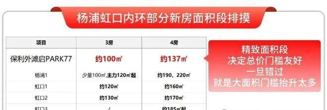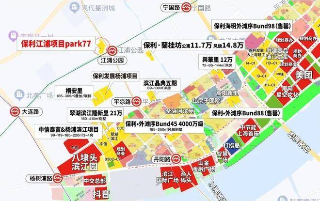 杨浦内环12/18号线江浦公园站双轨上盖,保利外滩启PARK77今日开盘!均价约13.55万/㎡,157套建面约99-137㎡3-4房上新!