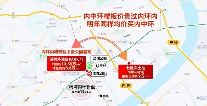 其一,七批次土拍,杨浦内中环宅地楼板价高达约9.2万/㎡,已高过内环内的保利外滩启PARK77(楼板价约8.6万/㎡)。