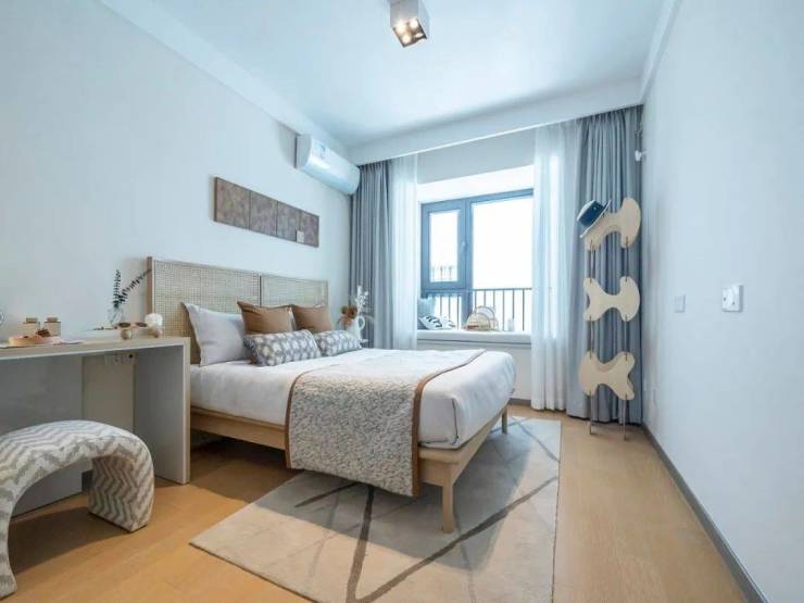 建面约90㎡2房2厅1卫,两间卧室朝南,舒适尺度搭配观景阳台,干湿分离的独立卫浴。