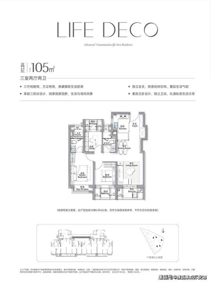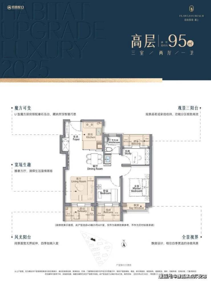 2、延伸空间拉满!主卧套房飘窗+步入式衣帽间+独立卫浴拥有2个飘窗,尊崇感与实用性拉满!三阳台+花池+4飘窗结构,有效延伸空间,实际使用空间更奢阔!