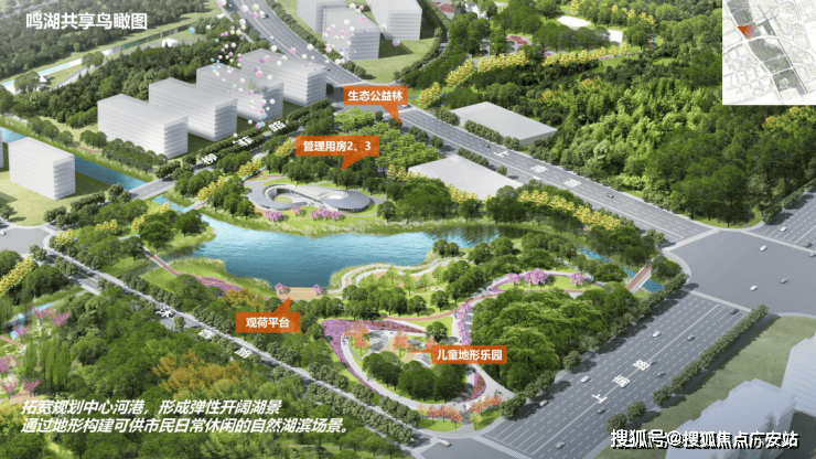 整座公园(在建中)设计了四大功能分区:湿地花园区、鸣湖共享区、林荫跃动区和社邻园艺区,嵌入人性化和生态化的设施,激活场地引人入园,堪称未来业主的休闲放松胜地!