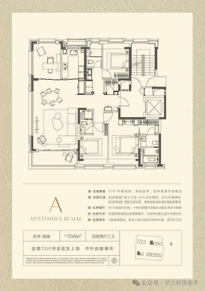 约184㎡公园头排景观房,四房两厅三卫格局,LDKB一体化设计!