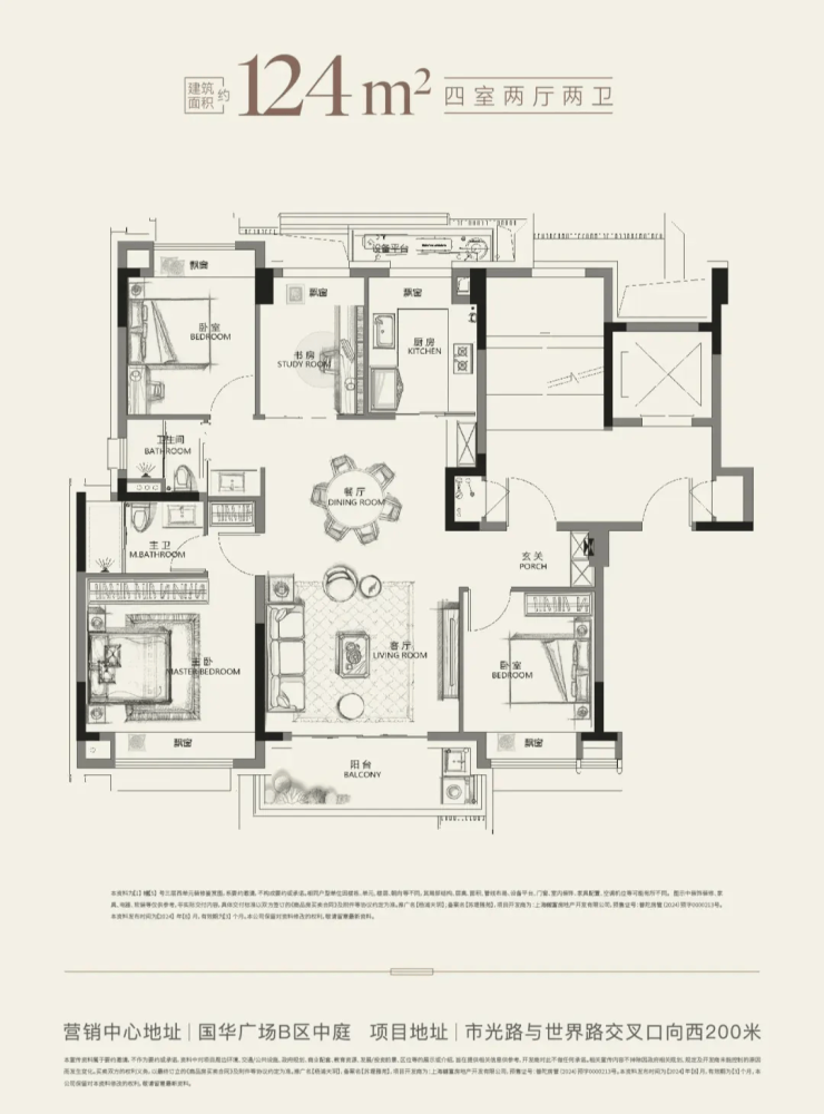 建面约124㎡4房(电梯洋房),总价1159万起