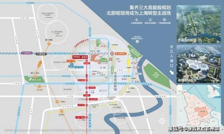 吴淞创新城北部枢纽以高铁北站为核心,打造“三江交汇、上海之门”的标志形象。作为上海科创中心主阵地的核心承载区,吴淞创新城将成为继张江、金桥之后的又一科创重地,势必为区域导入大量高质产业人群。