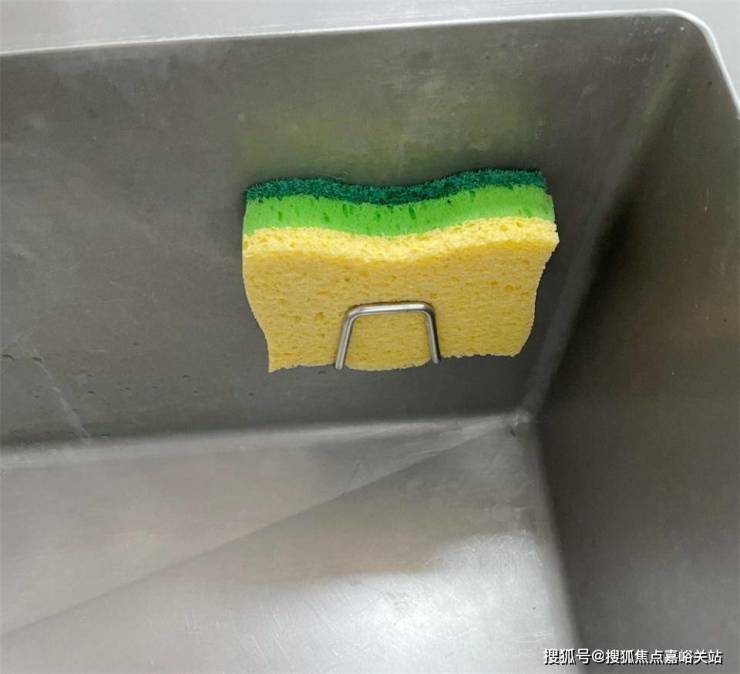 洗碗布用挂钩挂在水槽内壁上,平时收纳起来既不会让水槽显得乱,又可以充分起到沥水的作用,这么一个小小的挂钩,就解决了洗碗布收纳时容易滴水和不卫生的问题,细节做得十分到位。