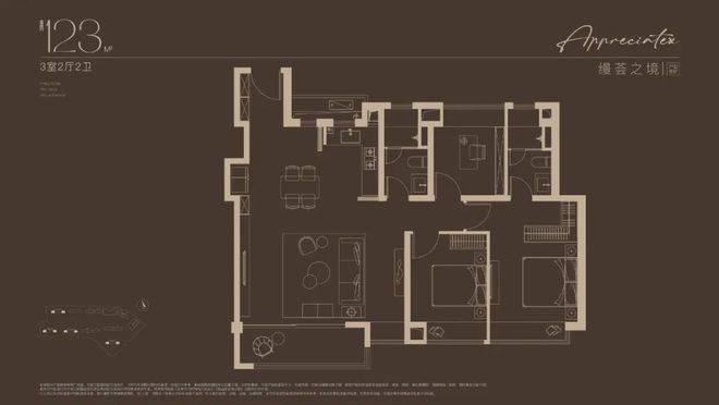 建面约 123㎡的三房,主卧带独立卫浴 + 衣帽间,为您带来酒店式套房体验;