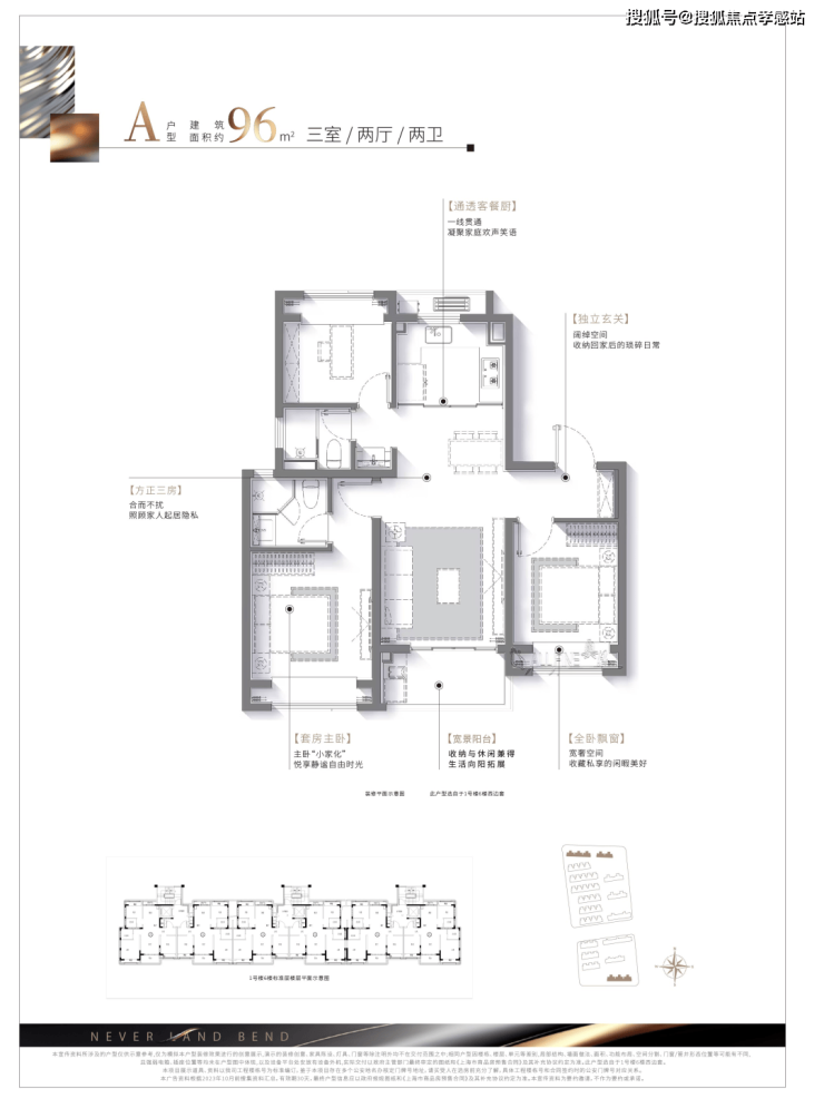 建面约:96㎡ 三房两厅两卫(高层)
