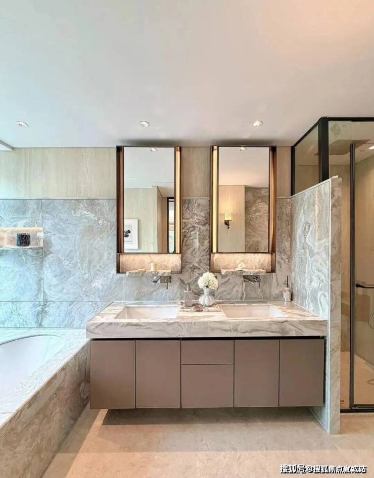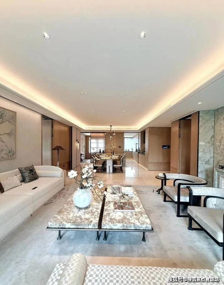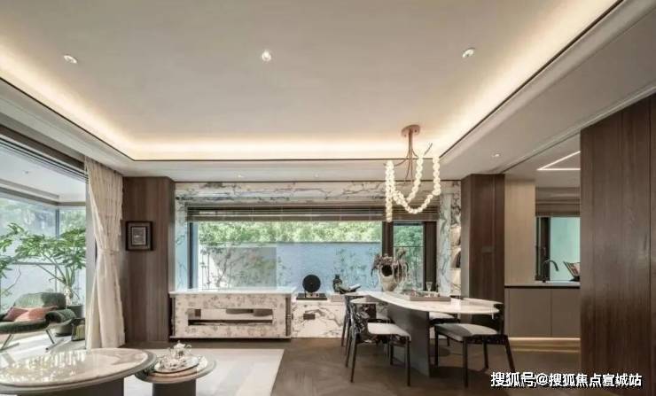 同时也得益于两个地块融合在一起形成了完整地块,项目打造了约160米超长中轴,约4000㎡中轴景观,约700㎡落玉水院、下沉庭院以及私属入户花园。