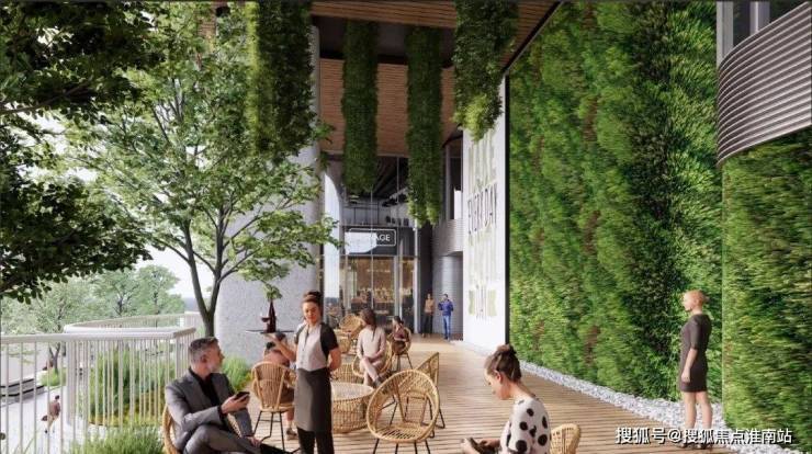 项目的食集也将对标阿姆斯特丹市集,在屋顶上打造天窗,在屋檐中留有特色城市观景台,在屋檐下构筑自然植物源,形成以人为中心,与绿植共处的社交空间。