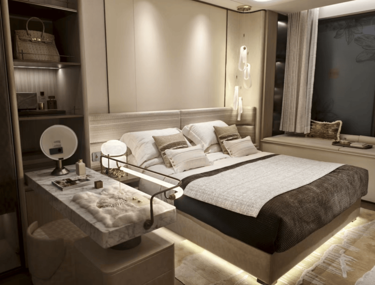 项目主入口外围将设置四重酒店式归家厅堂以及同款湄南河四季酒店的度假门庭。