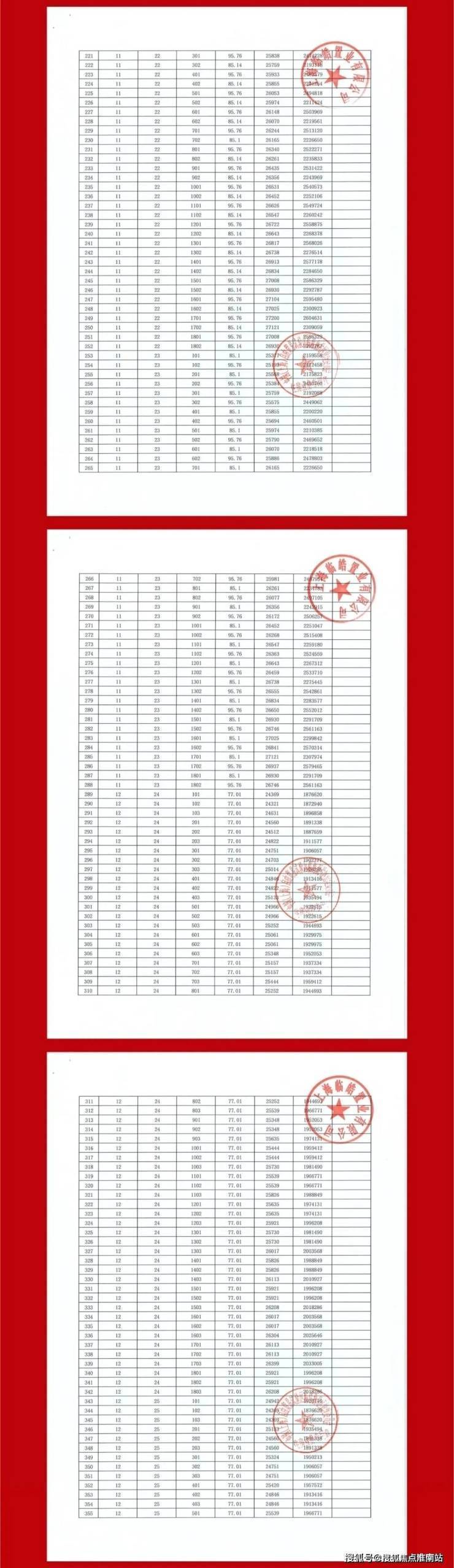 面积段:约75㎡/108套,约85㎡/144套,约95㎡/105套,约115㎡/36套