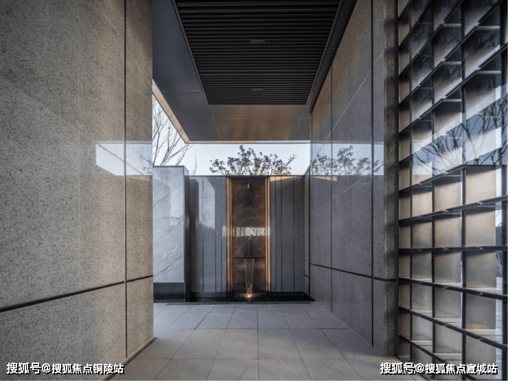 第五重:下沉庭院打造一体式景观,墙面流水至地面,结合水中花池营造出纯粹的自然之境。