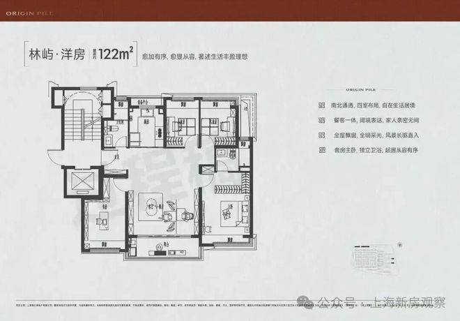 洋房平墅化:建面约108-124㎡精工洋房,以建面约124㎡四室洋房为例,超大餐客巨厅、独立主卧套房、独立书房,户型布局媲美平层别墅。可分可合厅房、全卧飘窗巧思,延伸日常生活的想象。