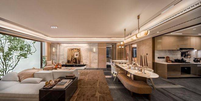 从地面到墙面,从客厅吧台到卫浴台面,天然奢石以不可复制的纹理,为空间注入永恒的艺术气息。嘉格纳六件套等国际一线品牌的严选配置,则让烹饪、收纳、起居,皆成为一场质感体验。