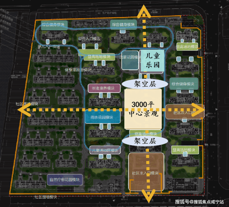 难以置信,项目竟舍弃社区中心的楼王位置,空出一栋楼,只为打造舒适开阔的生态核心。如此“血本”,换来了一个约3000平的超大尺度空间,做成了多功能中央景观。