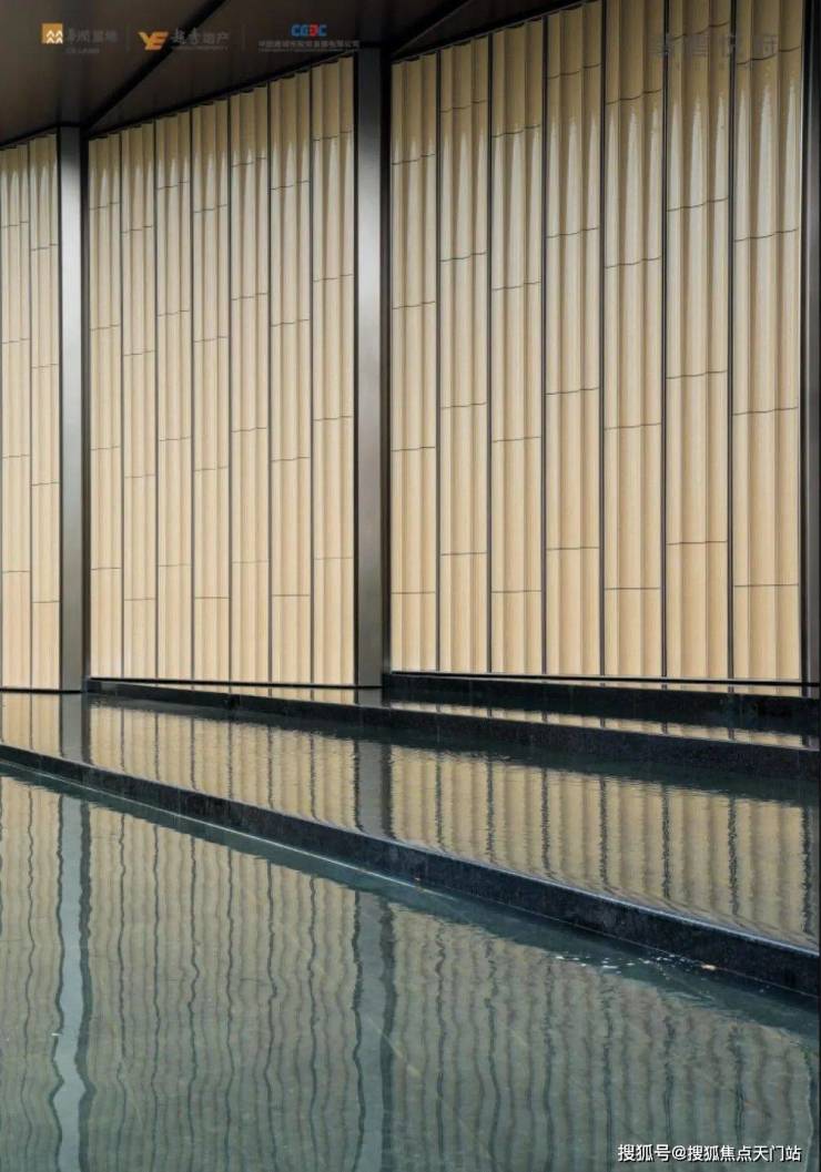 水晶景观庭院在动与静之间,细节到了流水、园林里,值得一提的是 ,庭院里的水,并不是静态,而是有涟漪的流动,同时为了保证低区业主不被流水声音干扰,特意做了“静音水”。这一现象的背后,是1300多块安哥拉石材的切割与拼接,完全是把细节拉满。