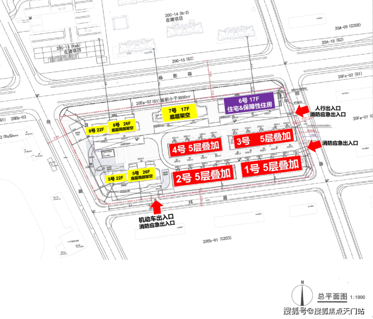 从规划方案来看,「翡雲悦府」二期楼栋的分布总体呈南低北高,东低西高的格局。东南侧分布4栋叠墅,西侧排布2栋22-26层的大高层,北侧排布2栋17层的高层,地块内保障房位于东北角。