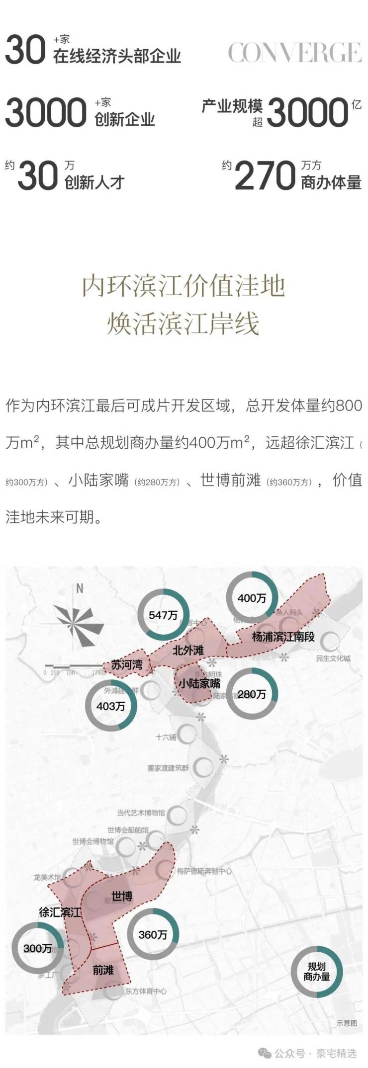作为内环滨江核心地段,杨浦滨江以15.5公里最长中心城区滨江岸线,承接上海 “一江一河” 世界级滨水区战略。2021年南段整体规划发布,2023年获市政府批复,约840万方总建面(规模 2.6 倍于前滩、2倍于小陆家嘴),成为中心城区最后成片开发的 “留白地”。2024年上海黄浦滨江规划2.0明确 “世界级滨水区” 目标,杨浦滨江南段与陆家嘴、黄浦滨江、北外滩并列中央活动区CAZ,抢占未来价值制高点。