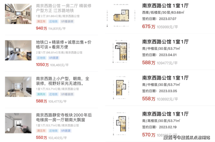 根据链家网显示,南京西路公馆同小区的挂牌单价均在10万以上,成交价总价在600万左右