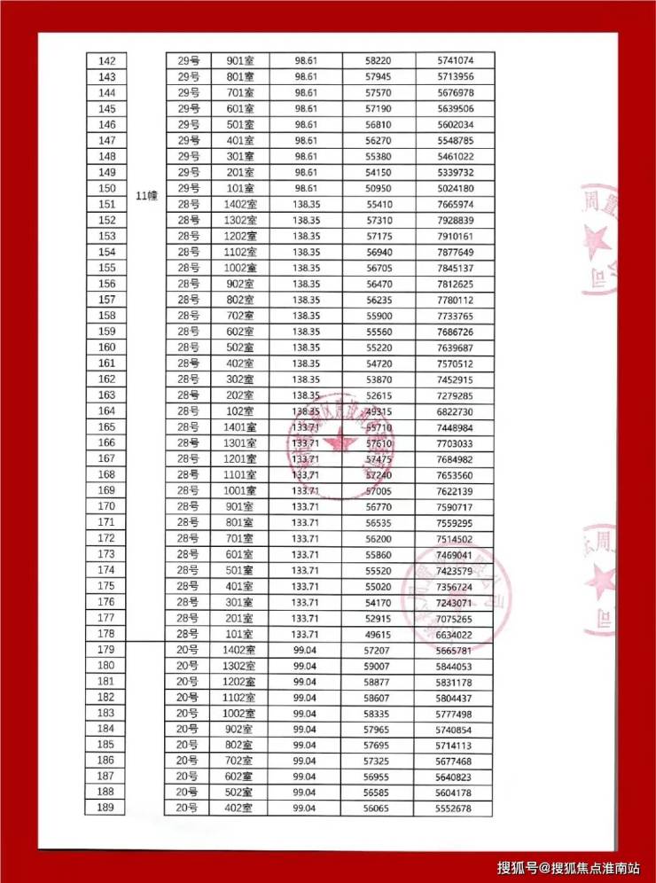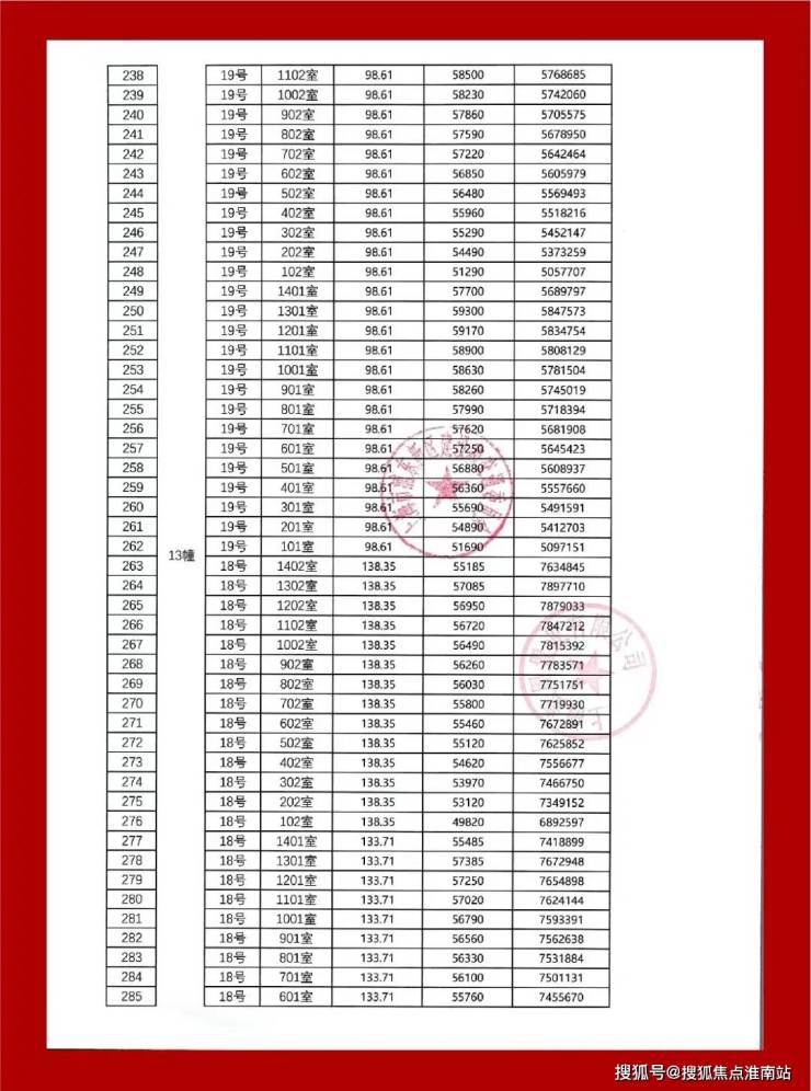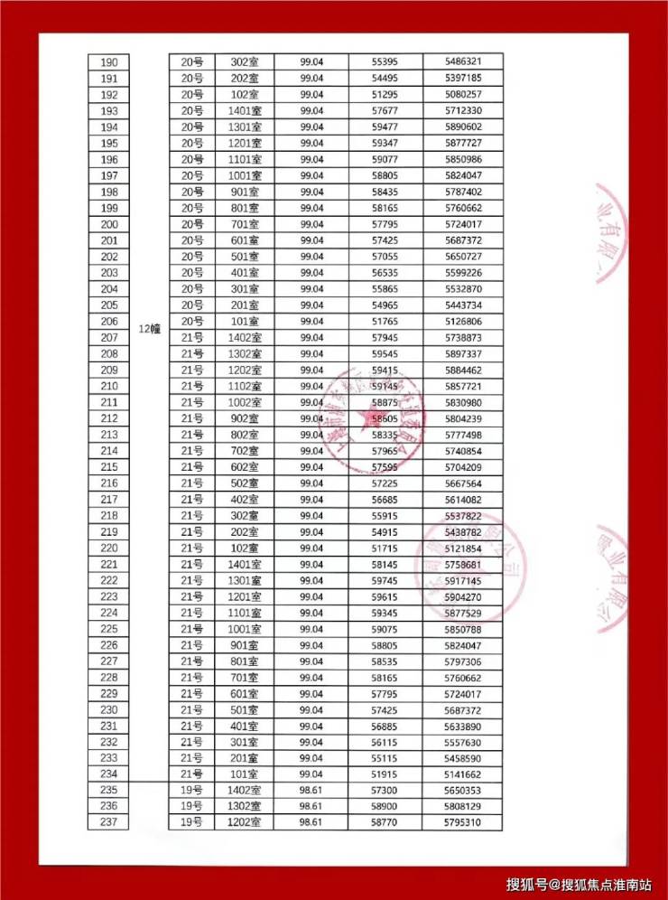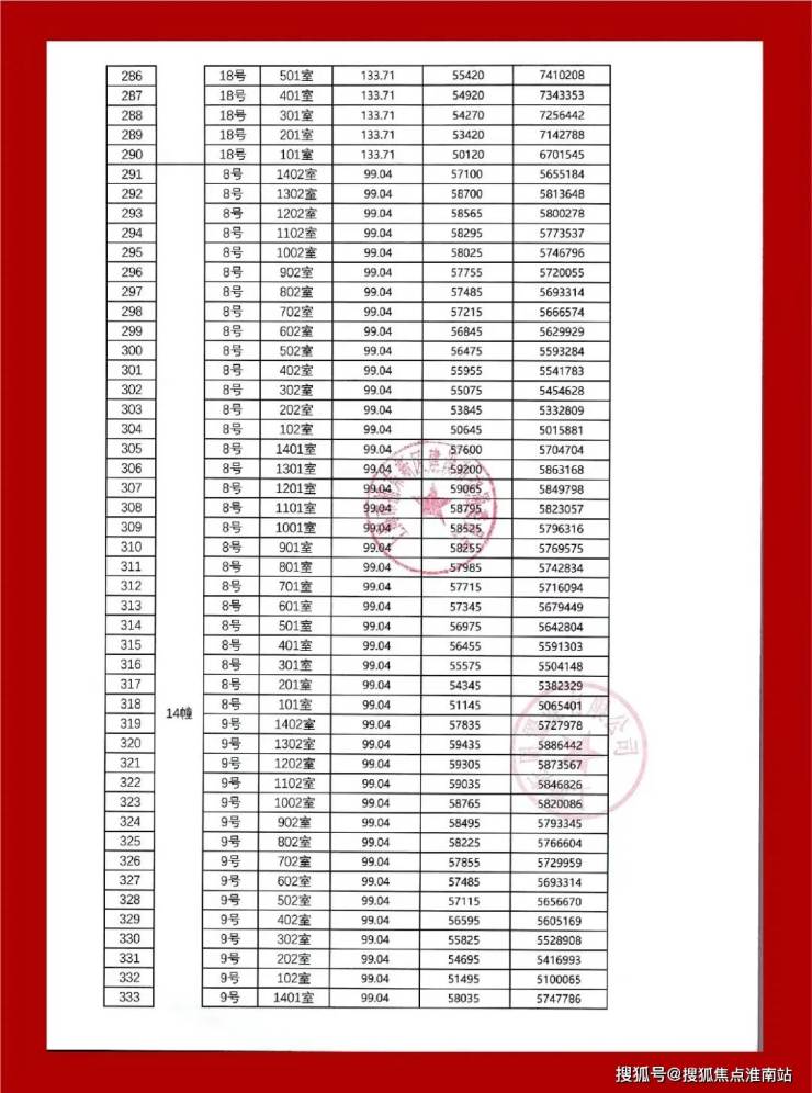 最新一房一价表: