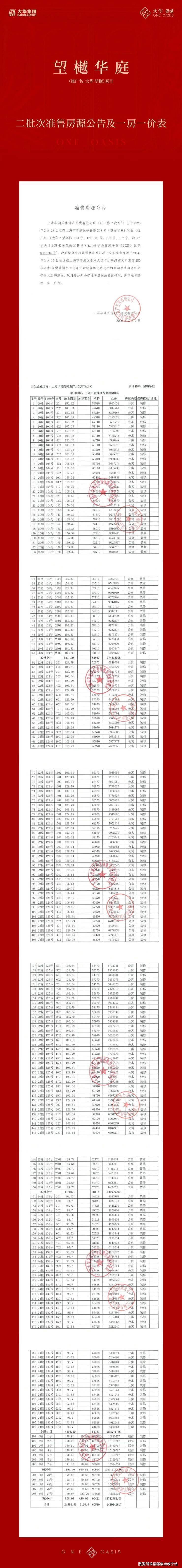 望樾华庭丨一批次一房一价表