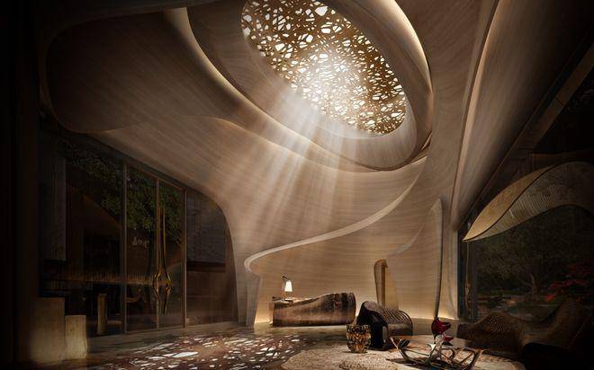 在建筑设计上,GOA大象设计跳出常规住宅的方盒子形态,以徐汇作为中国现代音乐发源地的文化基因为灵感,将“乐器王后”大提琴的优雅弧线,转译成建筑立面的二维曲线语言。