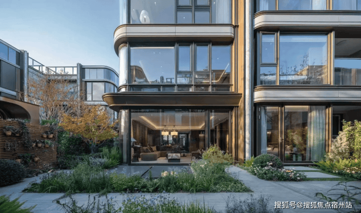 建筑外立面采用现代简约风格,融合海派摩登元素,搭配金属扣板、高端石材与真石漆,线条简洁流畅,质感高级大气,历久弥新。大面宽玻璃窗设计,不仅提升采光与观景效果,更让建筑与自然景观完美融合,彰显高端住区的美学气质。