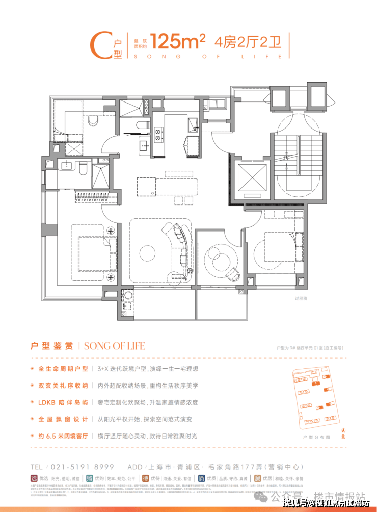 建面约125㎡全面升级迭代的四房户型,不止空间面积更大,且功能更复合、设计更合理、空间利用更高效。类一体一户设计,奢享独立明厅玄关,延伸生活的宽度;突破传统桎梏,约13.5米南向四开间大面宽,实现IMAX级采光自由;五星级酒店式主卧套房,奢配独立卫浴衣帽间;当市场仍在讨论“几房几厅”时,它已率先在500万级总价段完成越级打击。