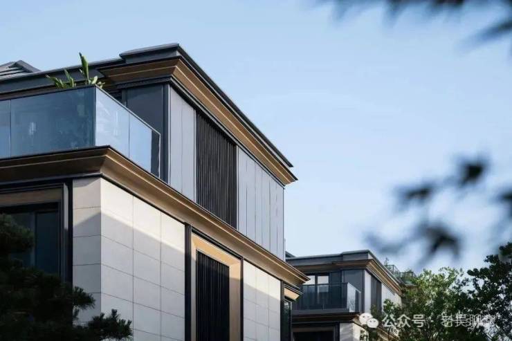 立面即“风骨”。海上原墅不同于市场常规项目日趋同化的建筑审美,立足广富林文脉,与历史对话,以古铜色巨构屋檐的公区立面,与广富林地标屋宇相映成趣。暖色金属板、大面积玻璃幕墙,线条凝练舒展,韵律沉稳而灵动,赋新广富林城市美学天际线。