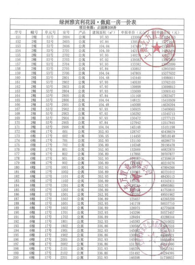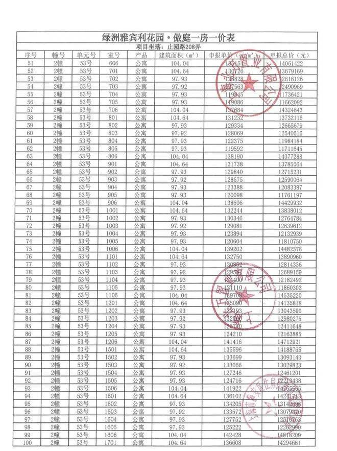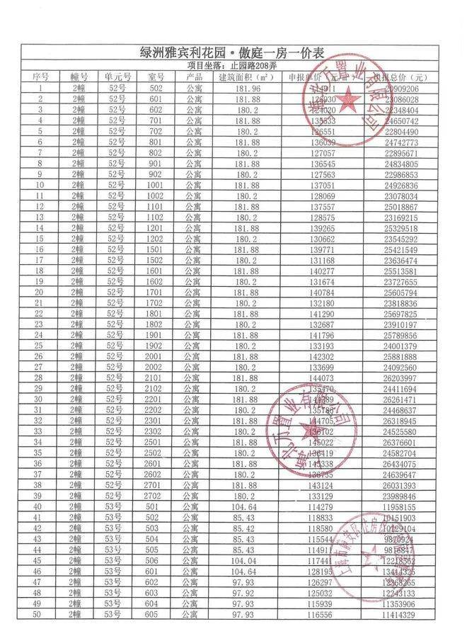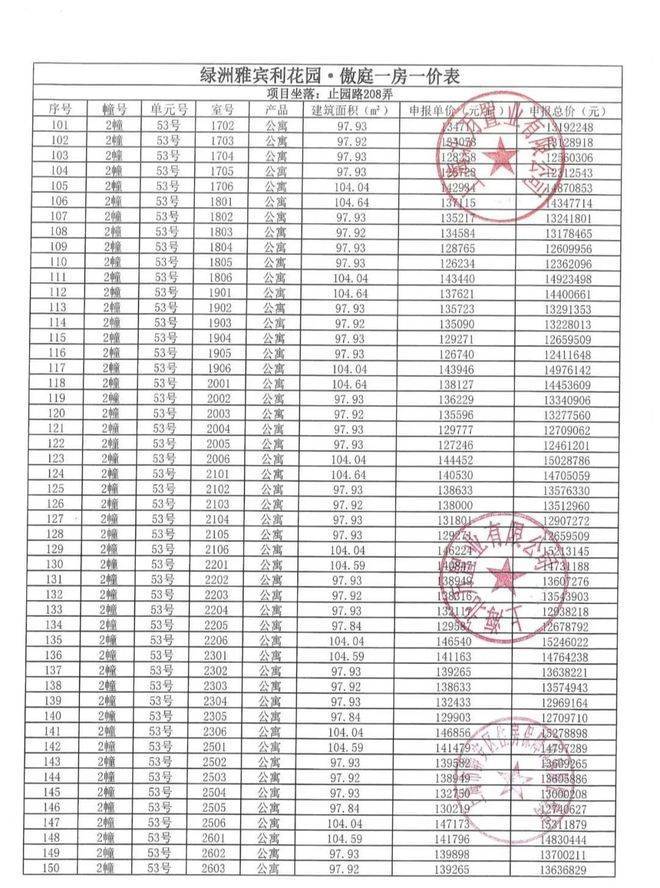 一房一价表: