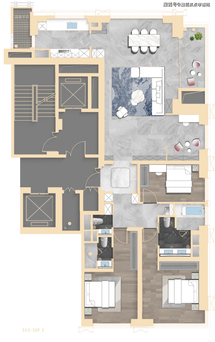 1#地块由3栋超高层组成+1栋高层,其中1#楼建筑高度达165米!(超过海泰北外滩的160米和华侨城苏河湾双子塔的150米了)