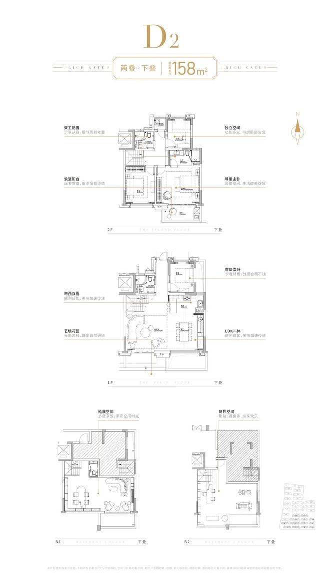 别墅/叠加户型:主力为150-260㎡的联排别墅及叠加产品,下叠赠送花园及双层地下室,上叠附带阁楼与露台。